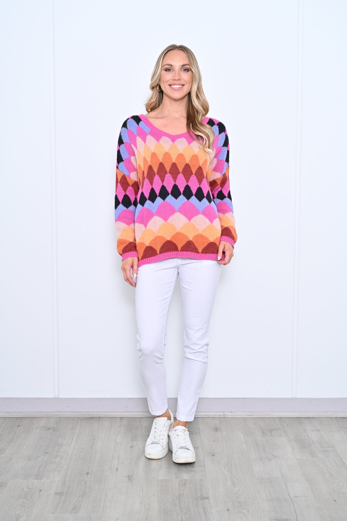 Argyle Knit Jumper Pink Multi