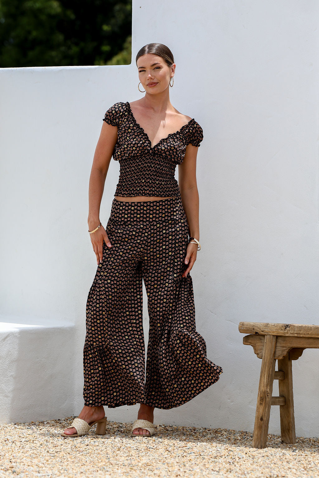 Get ready to have some serious fun in the Nina Pants! With a shirred waist band and a playful print, these pants will quickly become your go-to for any occasion. Pair them with the Gabrielle Top for the ultimate quirky and stylish outfit. Trust us, you won't regret it!